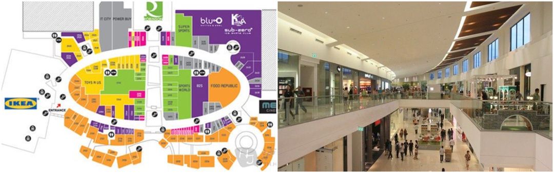 Mega Bangna的设计为圆形的两层楼建筑,再加上周边一些附属小建筑物,所以逛一圈下来会回到原来的起点,这样才不会有重复逛的感觉。