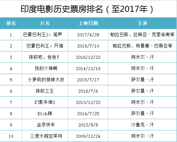 可以说,除了《巴霍巴利王》系列这一史诗巨片比较特殊之外,“四大汗”基本统治了印度电影界。