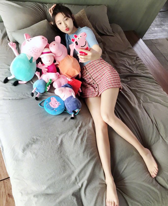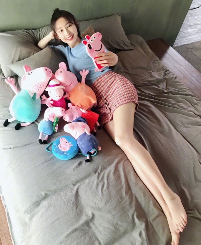 张俪晒小猪佩奇合影