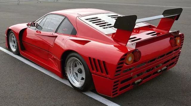 为了进化,法拉利让线条清晰、复古的288 GTO突变为锯齿般加宽的方形怪兽。从老的5组 512BB/LM及308 GT/M获得灵感的玻璃纤维和凯芙拉车身面板,被装配到经过轻量化和强化的底盘上,让整车重量下降到仅有940千克。