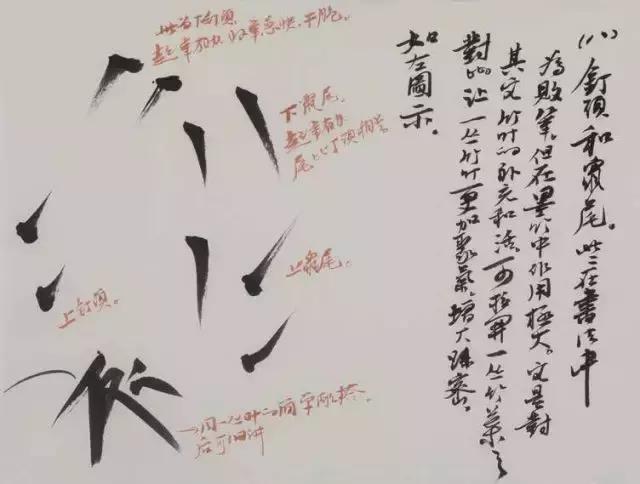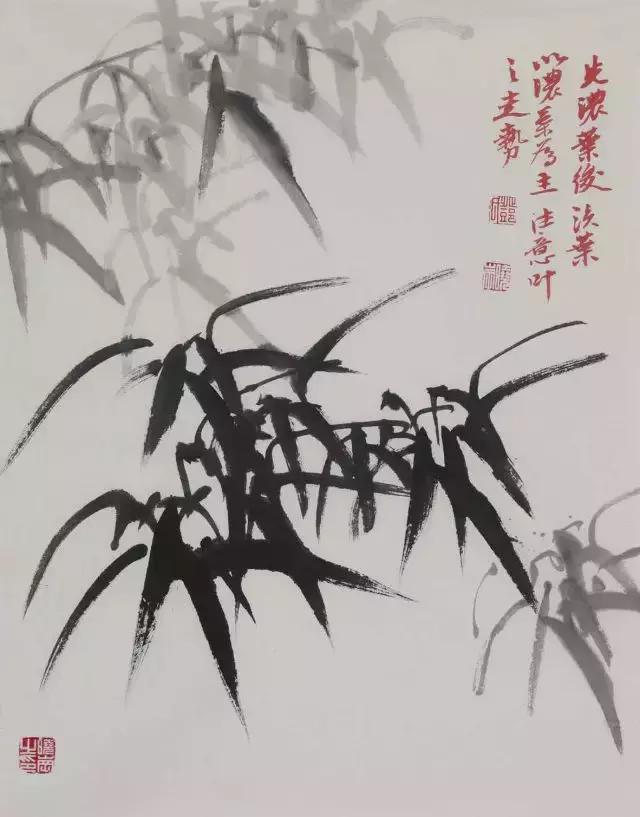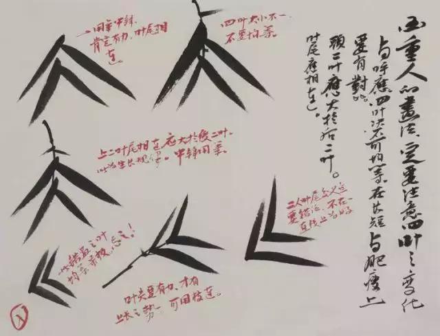 “钉头”“鼠尾”二种在书法中为败笔,但在墨竹中作用极大,它是对其他竹叶的补充,让一丛竹叶更加聚气,增大疏密。