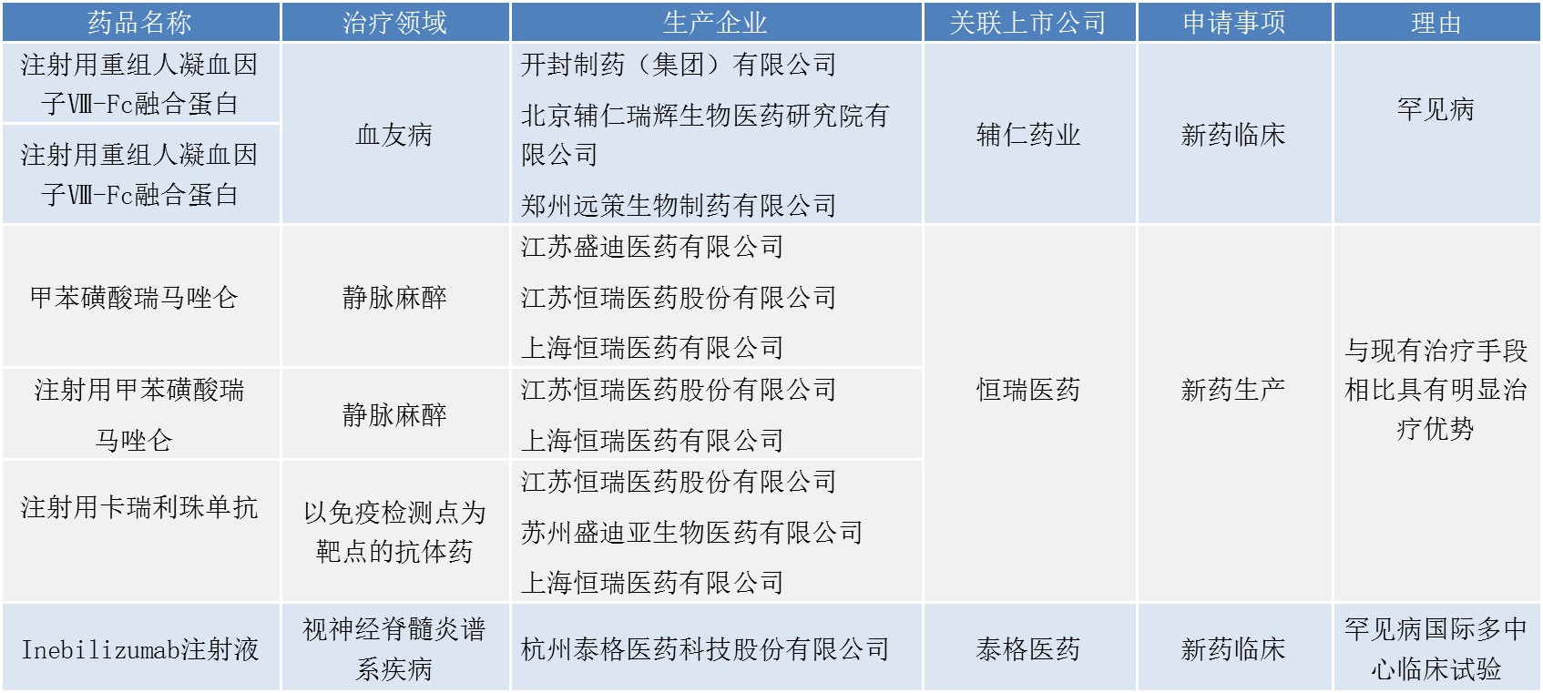另外,4月23日,药品审评中心(CDE)发布了第二十八批拟纳入优先审评的药品名单。此次共24个药品入选,包括1个仿制药(临床),3个增加新适应症药物、20个创新药(16个生产、4个临床),其中涉及恒瑞医药、辅仁药业(600781.SH)、泰格医药(300347.SZ)3家上市公司,恒瑞医药成为最大赢家,有3个新药生产申请拟进入绿色通道,包括有望达到10亿元规模的重磅品种甲苯磺酸瑞马唑仑。