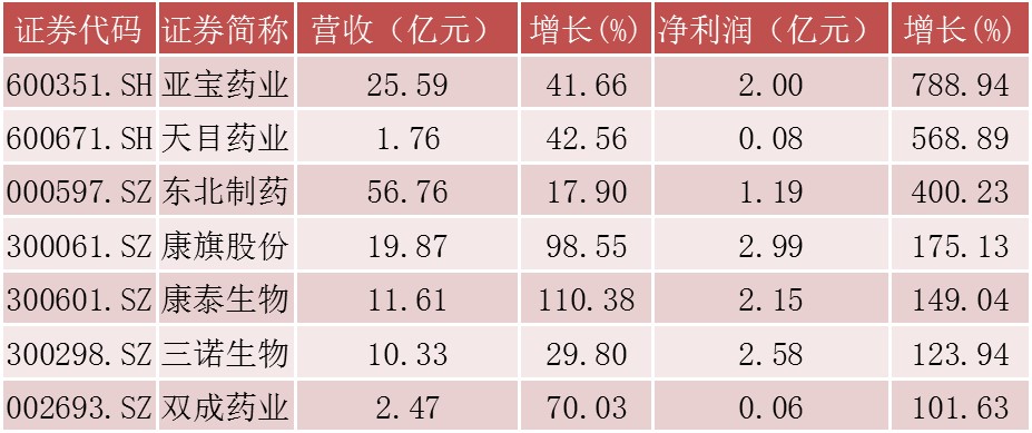 亚宝药业去年净利润增长近8倍 7家企业降幅超过100%