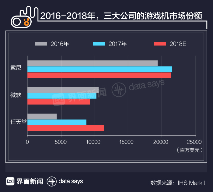 Switch游戏机热卖的背后是整体主机游戏市场的复苏。据IHS Markit的最新研究数据显示,2017年游戏机市场迎来了第二春,创下2011年来的最高记录。其中索尼仍保持绝对优势,但游戏机市场的复苏还有赖于任天堂的强势表现。