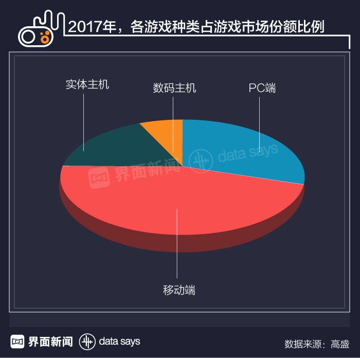 其实随着全球移动通讯行业的快速发展,游戏市场早已被移动端游戏占据。承载我们儿时记忆的主机游戏机,仅占据游戏市场1/4的市场份额。不过据高盛的估计,因为主机游戏机和PC、移动端游戏的受众不同,未来市场前景广阔。