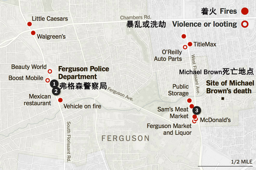 以下是弗格森暴乱现场和全美各地举行抗议活动的照片: