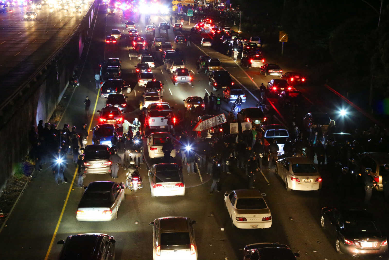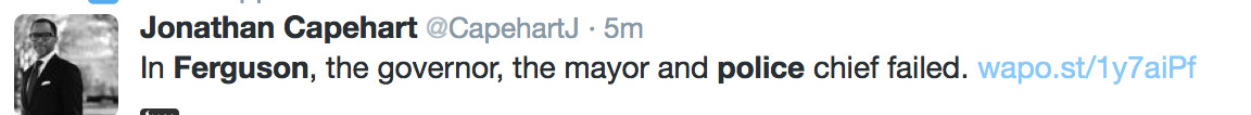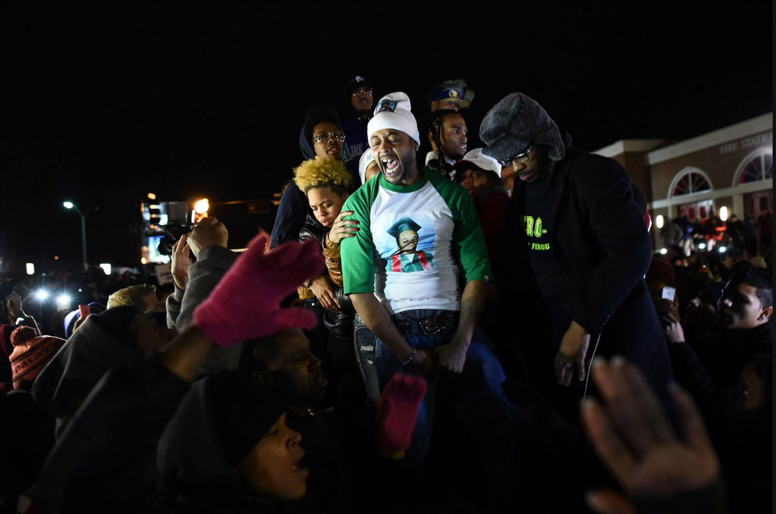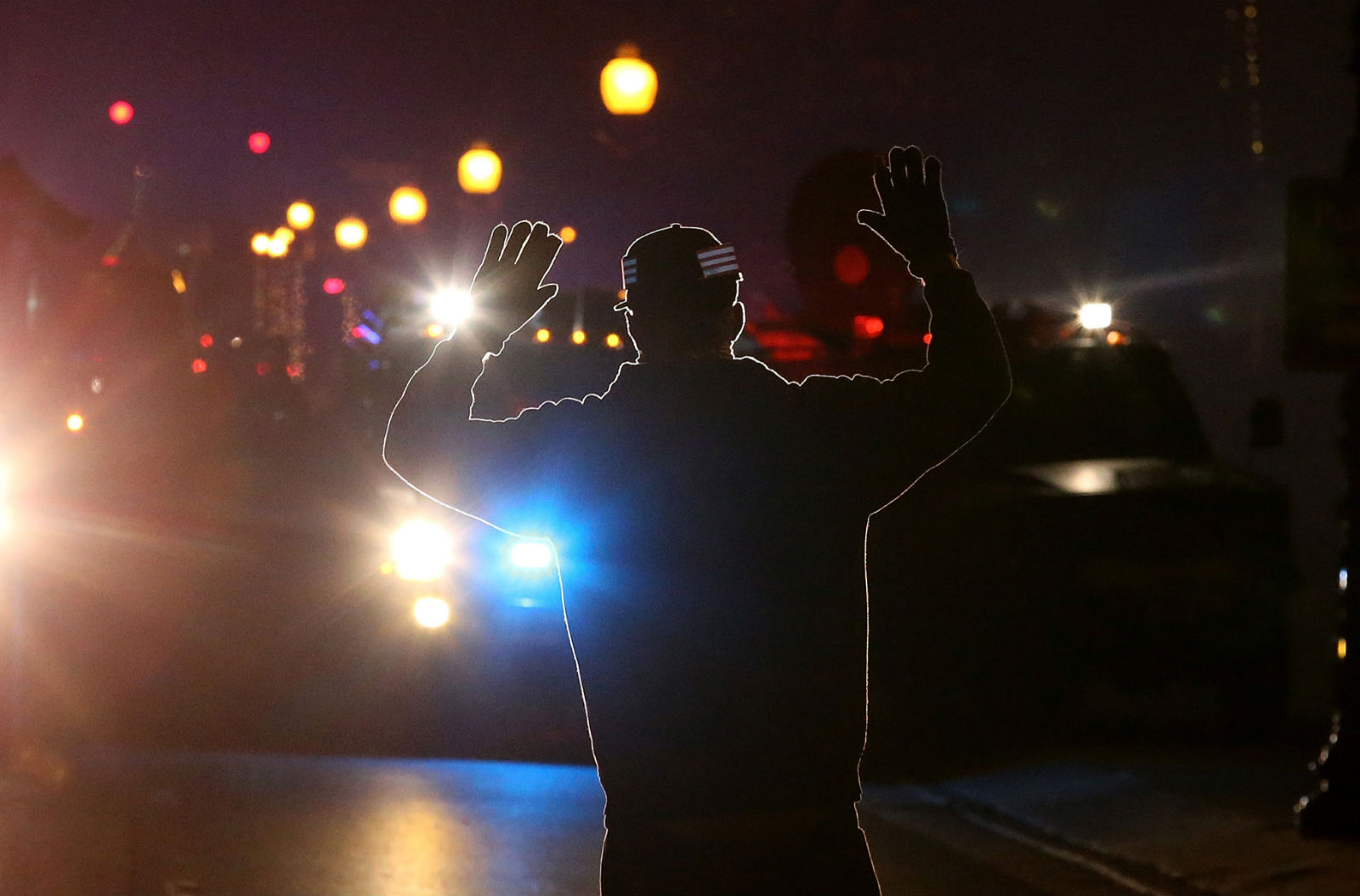 当晚12点左右,警方报告在部分大型游行的集中地点,有重型自动机枪开火的声音。抗议者们还堵塞了州际44号公路的入口。为了安全考量,圣路易斯国际机场的入港航班也通通被迫在别处降落。