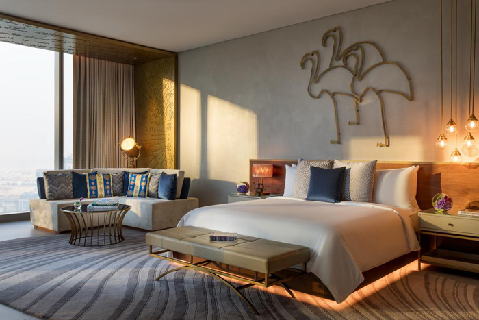 对于初次探访的旅行者来说,酒店往往是这座城市为旅行者打开的第一扇引人遐想的入口,作为阿联酋的首家万丽酒店,迪拜市中心万丽酒店有着令人过目难忘的别样风情:酒店大堂中央悬挂着WA International工作室操刀的金属装置艺术作品,原生混凝土材质的墙壁和昂贵的木质地板相得益彰,客房内,床头上方的墙壁上有着黄铜线勾勒出的动物造型,昂首徒步的骆驼或是细长腿的火烈鸟,在充满现代设计感的空间内,不动声色地营造出属于当地的异域情调。