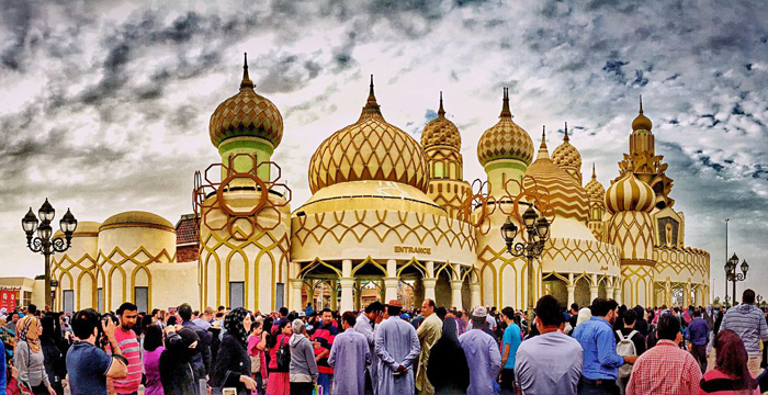 人们之所以愿意在迪拜大把花钱、豪掷千金,或许也是因为,在这里,消费购买的不仅是商品,还有乐趣和愉悦。如果说漫步于不同国家主题的购物村,是在购物的同时让人有着游园般的趣味体验,那么在迪拜的地球村(Global Village)主题公园,则是真正如同穿梭历史般丰富多彩的主题乐园。
