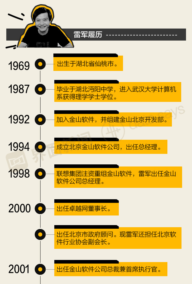 小米取得今天的成绩,与其创办人雷军的决策和运作密不可分。他出身在教师家庭,自小成绩优异。18岁进入武汉大学计算机系学习,并在大学期间开始创业。毕业后随即开始书写了从金山到猎豹到欢聚时代(YY)到小米的亮眼高管履历。