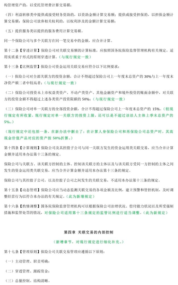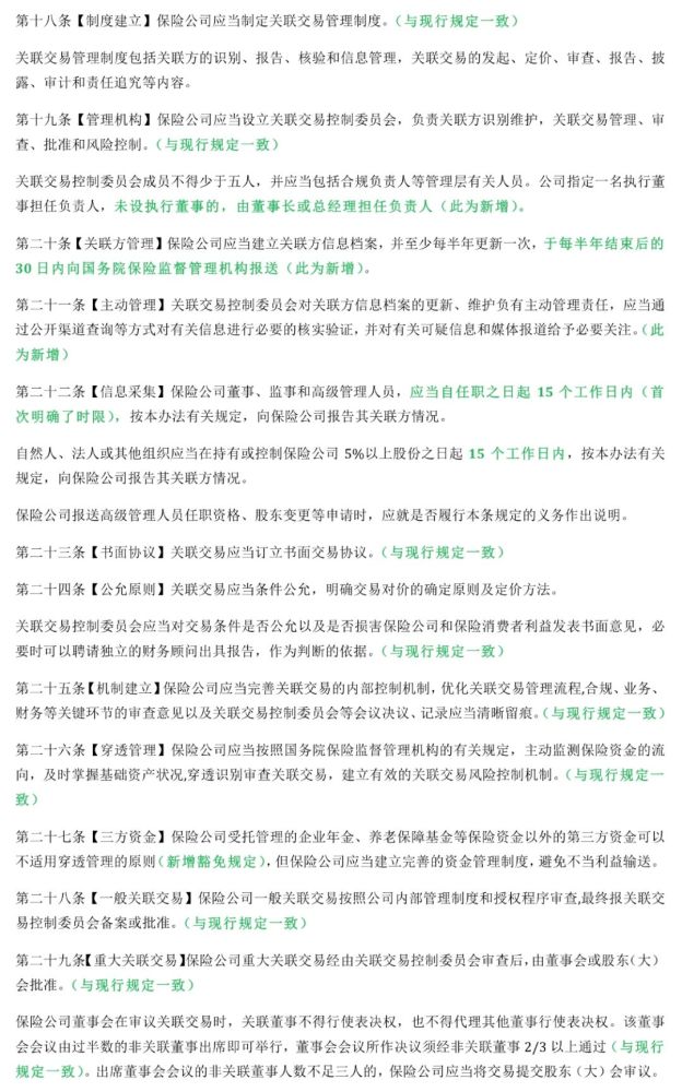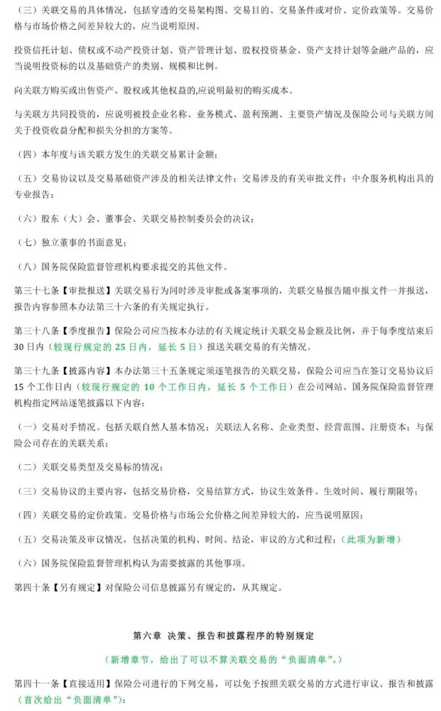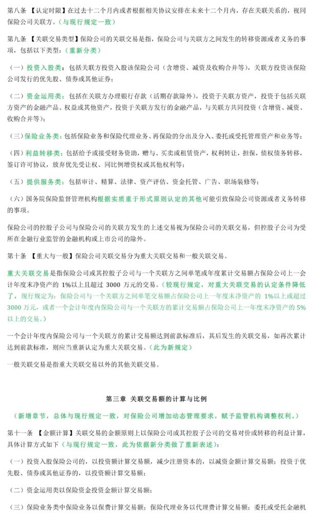 新办法新增了三个章节,主要是将保险公司关联交易内控、披露和报告事项予以了扩充和细化。