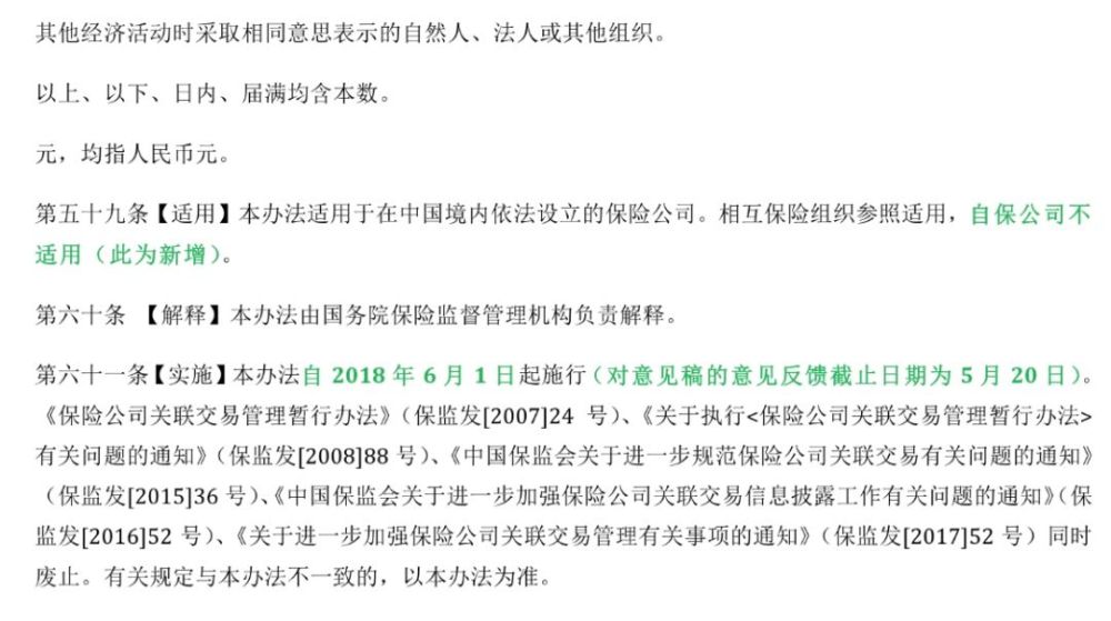 银保监会本周下发《保险公司关联交易管理办法(征求意见稿)》(下称《新办法》),将结合相关各通知内容,彻底修改《保险公司关联交易管理暂行办法》(下称《老办法》)。
