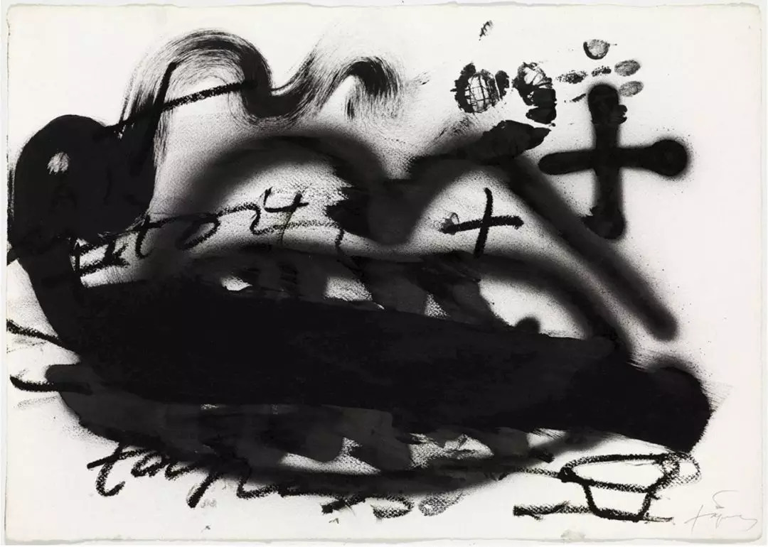 Estate of Antoni Tàpies, Boca negra, 1996, Paint and pencil on paper, 50 × 71 cm, Timothy Taylor