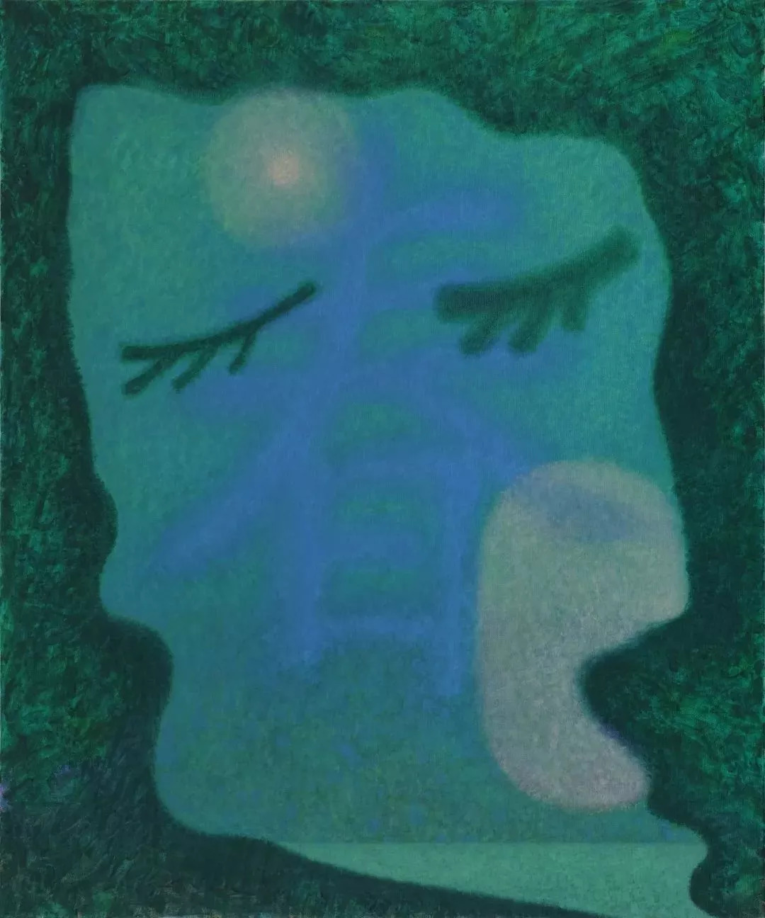 周思维,《春 (闭眼)》, 2018,布面油画,120x100 cm,天线空间