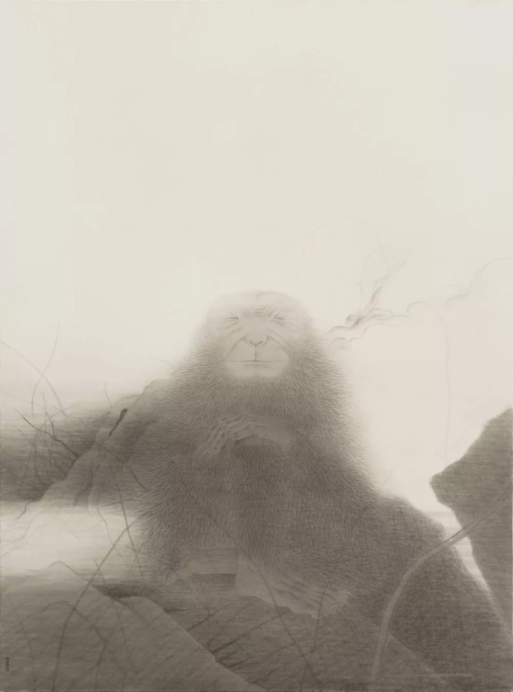 邵帆,《荒草老猿》,宣纸上水墨,2017,175×130 cm,麦勒画廊