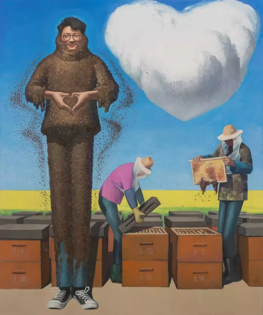 王兴伟,《养蜂人之子——画家廖国核》,布面油画,2017—2018, 240 × 200 cm,麦勒画廊
