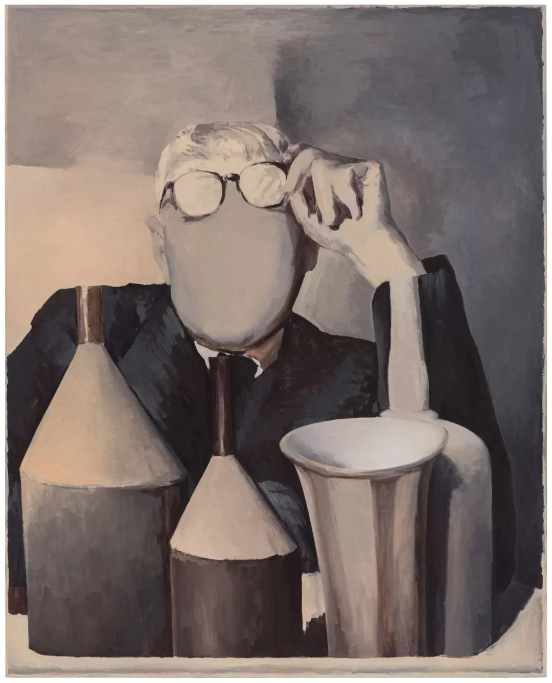 管勇,《人物与静物 j》, 2017,布面油画, 200.0 × 160.0 cm, 魔金石空间