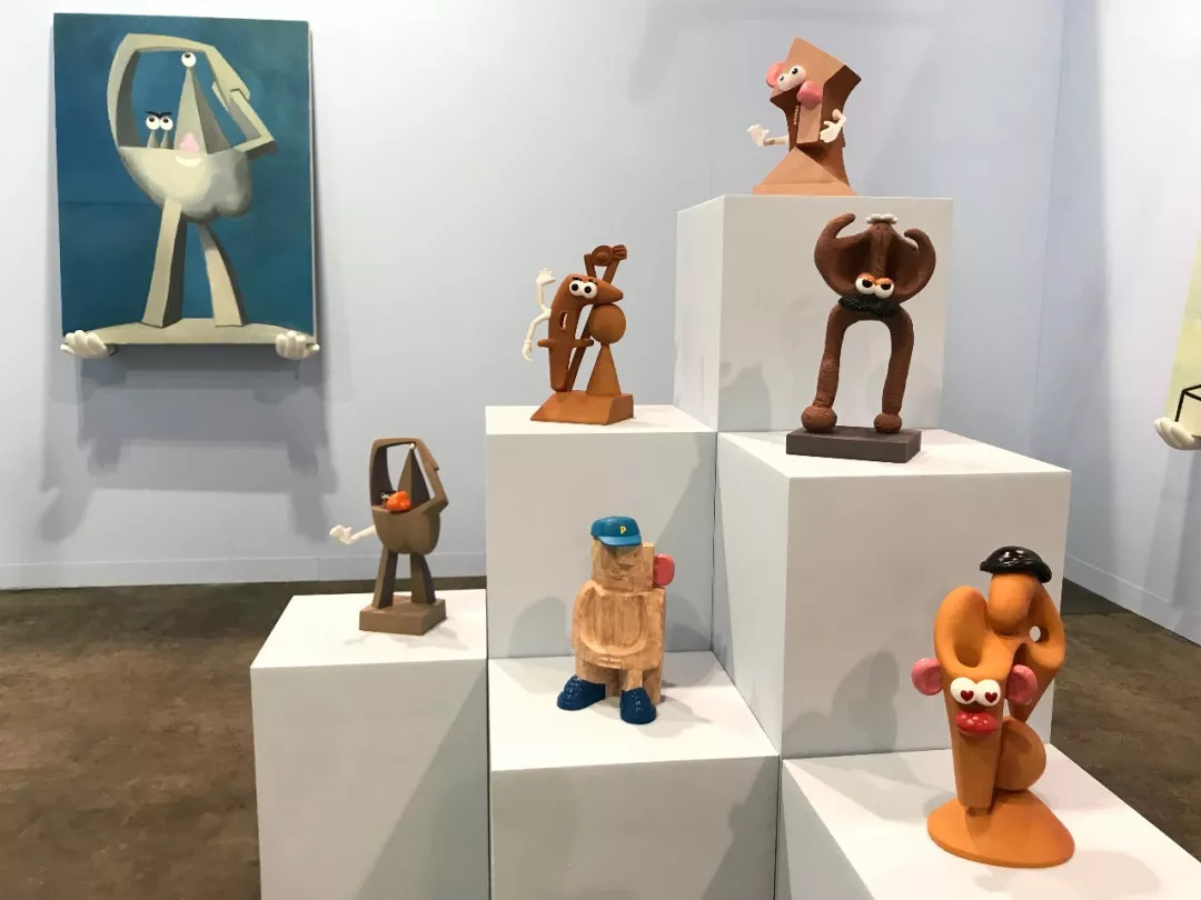 本次展位陆平原的作品是以绘画和小型雕塑为主,这个系列的作品跟陆平原以前的创作有关系,从一个故事的文本出发。他以《玩具总动员》里面土豆先生的故事作为起点,用毕加索立体解构主义的创作方式创作了一系列的雕塑和平面作品。