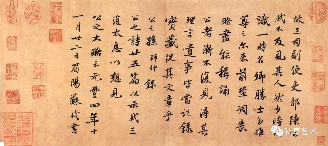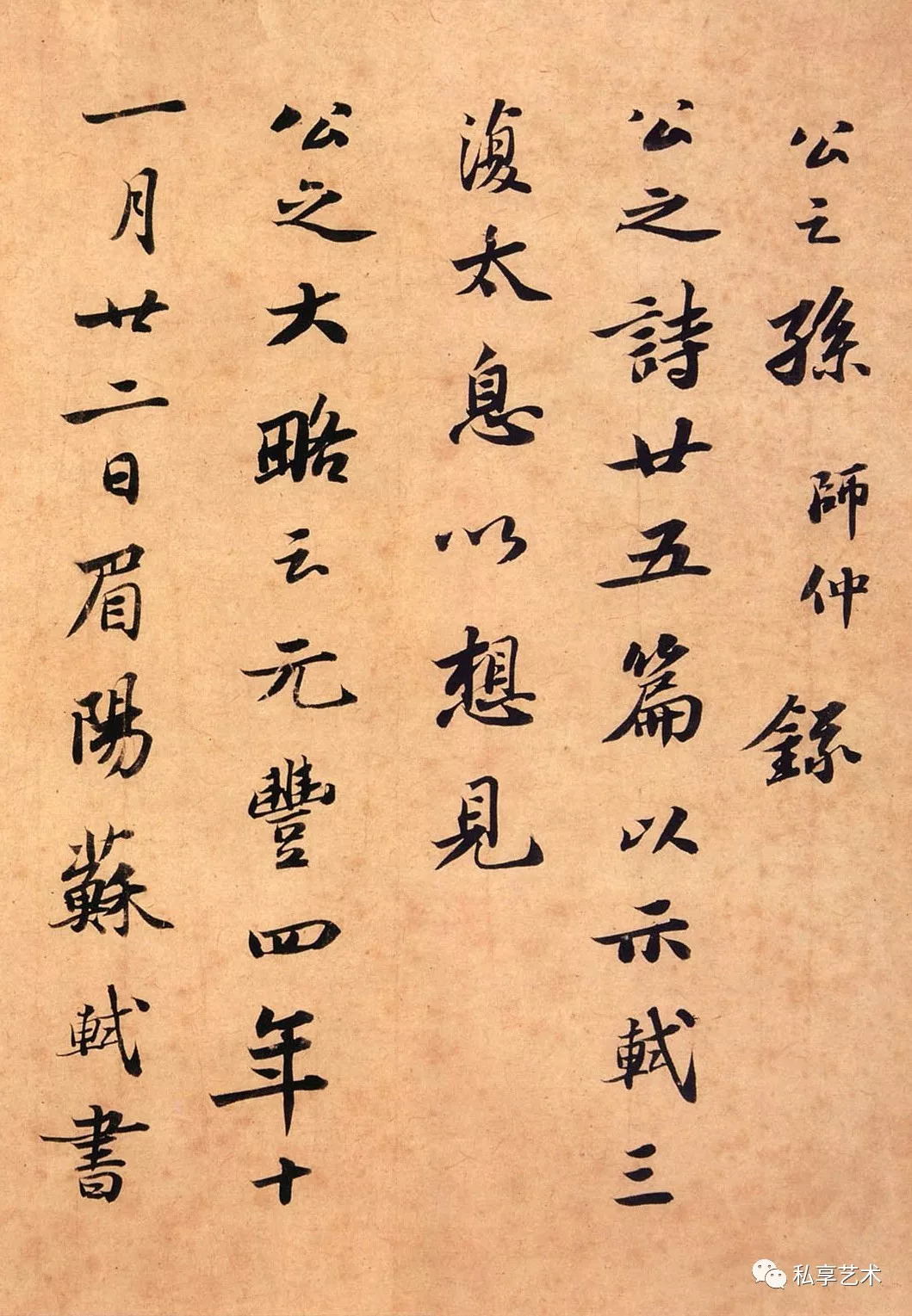 故三司副使吏部陈公,轼不及见其人。然少时所识一时名卿胜士,多推尊之。尔来前辈凋丧略尽,能称诵公者,渐不复见。得其理言遗事,皆当记录宝藏,况其文章乎公孙师仲,录公之诗廿五篇以示,轼三复太息,以想见公之大略云。元丰四年十一月廿二日,眉阳苏轼书。