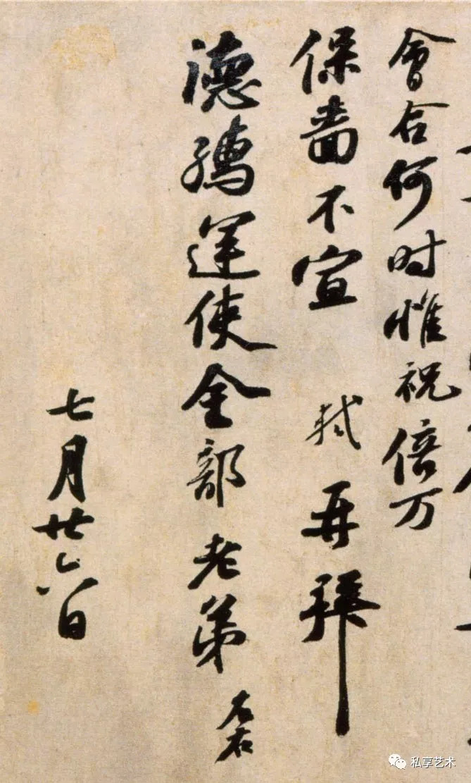 轼启。春中(四字不可辨)达,久不闻(一字不可辨)渴仰增积。比日履兹馀(一字不可辨)尊候何似,眷聚各无恙。轼蒙庇如昨。二哥(一字不可辨),春(三字不可辨)有书问往还,甚安也。子由不住得书,甚健。会合何时,惟祝倍万保啬,不宣。轼再拜。德孺运使金部老弟左右。七月廿六日。
