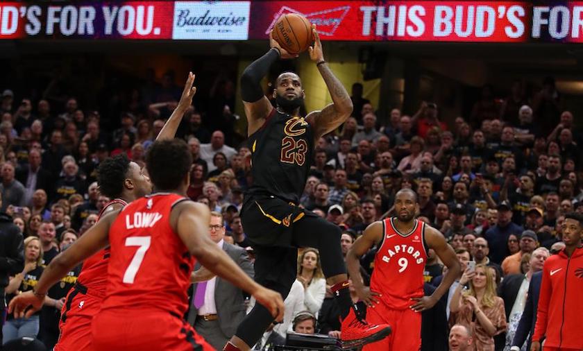 勒布朗·詹姆斯在东部决赛第二轮骑士对阵猛龙的第三场比赛中,最后时候一个高难度姿势投入打板两分,绝杀对手。这可能是这轮系列赛以及整个季后赛的高光时刻。