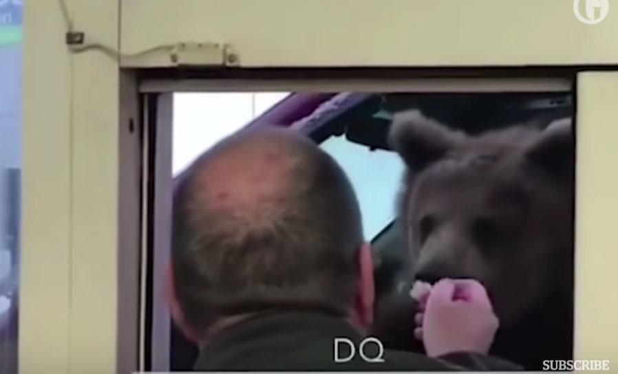 动物园的工作人员带着一只可爱的熊熊开到了当地DQ的外卖窗口,替它点了一份冰淇淋,熊熊显然对冰淇淋非常满意,热情地舔个不停:)