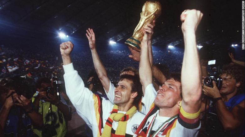 对于德国球迷来说,1988年欧洲杯队服会是他们记忆中最亮的那颗星。1988年,西德首次承办欧洲杯,他们放弃了之前黑白配色的球服,改穿注入国旗黑红黄三色的新球衣。这件新队服虽然未能在当届欧洲杯上为球队带来好运,但在两年后的意大利世界杯上,西德身着这件球衣决赛战胜阿根廷,历史第三次赢得世界杯。同年东德西德统一之后,德国国家队的第一场比赛上,球员们也是身穿这件国旗元素球衣进行比赛的,这赋予了它无比重要的意义。