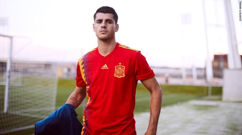 除以上诸国外,西班牙和比利时本届世界杯的球衣则是对经典的完美致敬。西班牙新队服的灵感来源于1994年美国世界杯,当时斗牛士军团身着一件点缀有竖条纹的红色主场队服,条纹由海军蓝和黄色组成。当届世界杯西班牙虽战绩不佳,但这件球衣却因独具特色而被球迷铭记,瓜迪奥拉、恩里克等人无不身穿过这件球衣为国征战。本届世界杯制造商为球衣加入红色元素,并使三色条纹完美衔接到一起,如此设计使得位于中央的海军蓝呈现出一种变身紫色的视觉错觉,别具一格。