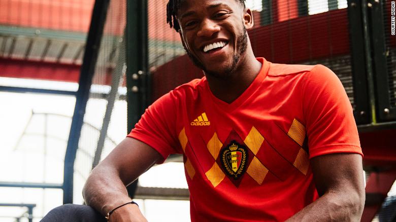 比利时的球衣与西班牙相似,主色调都为红色,只是条纹由纵向改为横向。其原始版本为球队在1984年欧洲杯上的主场队服,当年一条白色缎带贯穿球衣中央,上面覆盖了红黑黄三色菱形条纹。本届世界杯去掉了白色缎带设计,仅保留了菱形条纹元素,更加贴近现代潮流。