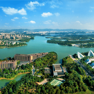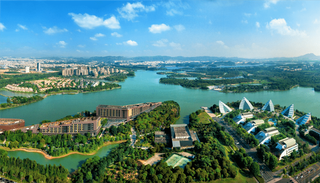 松山湖位于广深港黄金走廊的中心区域,临近广州、深圳、惠州等珠三角城市群,园区绿化覆盖率超60%,有着总面积达350万平方米的生态公园以及占地约650万平方米的国家城市湿地公园。