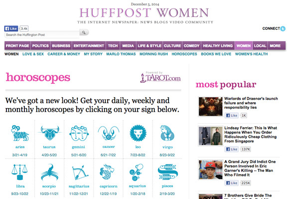 博主Nicole A. Murray认为,科学研究和数据调查清楚表明,占星术是专门针对女性作营销和宣传的。以《赫芬顿邮报》为例,如果你想看它的星座运程,你得先打开女性频道。“这种做法是在加深人们对女性的偏见,认为女性对伪科学、看手相更感兴趣,而不理会真正的科学、实验、数据和决策”。