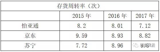 下面比较下怡亚通、京东、苏宁最近三年的存货周转率: