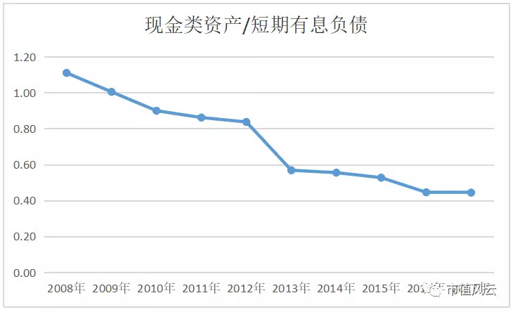 到2017年,这一比值已经下降到0.44,其短期偿债压力可想而知。