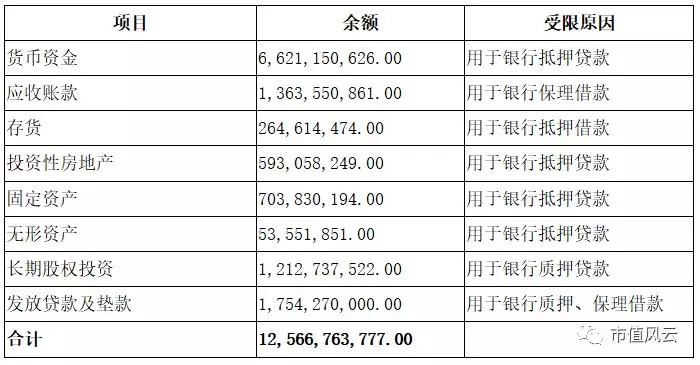 下面再来看看怡亚通截止到2017年末的受限资产: