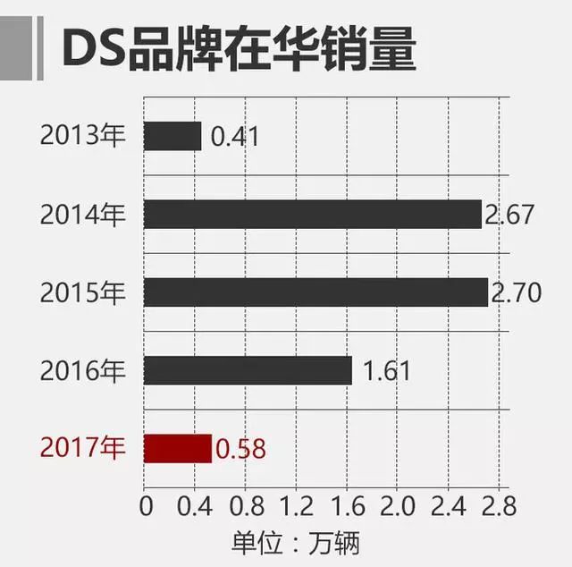 低迷的销售表现导致DS品牌母公司长安标致雪铁龙在2017年亏损11亿元,同时为长安汽车做出了负5.5亿元的营收“贡献”。
