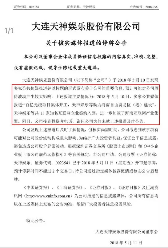 昨日,天神娱乐公告停牌,原因是5月10日多家媒体以标题形式发布了关于公司的重要信息,可能对股价波动产生较大影响。