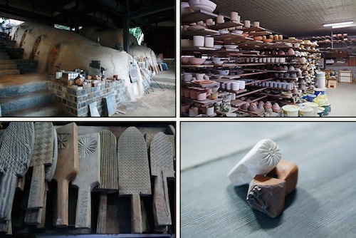 对于大型陶器来说,“押印”时形状容易被破坏,因此,陶器内部能否尽快干燥是重要的课题。太郎右卫门经过多次试验,最终在陶器内部放入电灯泡,成功地解决了这个问题。尽管这样,“押印”,在他看来,仍然如同“美人的脸”一样,稍不注意就会出现微妙的误差。为此,在给每个陶器“押印”之前,太郎右卫门都会反复给陶器“写生”,力争让它最后呈现出最完美的形状。