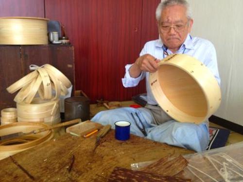 大川良夫是1933年创建于东京市中野区的“大川蒸笼”第二代继承人。这家老铺近乎执拗地沿袭着1000多年前以上的技术,所制作的蒸笼完全不使用黏着剂,而是用樱花树皮一针一线缝合出来的。