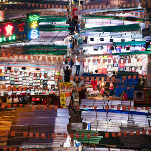 傍晚时分,街道两旁开始热闹起来。各类小商摊贩纷纷摆出商品,占据了整个街道,留出一条只能两人容身通过的狭长小道。人们在其中穿梭,大部分是游客,时而停下脚步挑选自己感兴趣的物件。街口经营着一排海鲜排档,当地人在下班后也会特意赶来与朋友小聚,缓和一天上班紧张的节奏。如果有兴趣,还能随意挑选一个临时搭建起来的算命小摊坐下,为自己的运势卜上一卦。