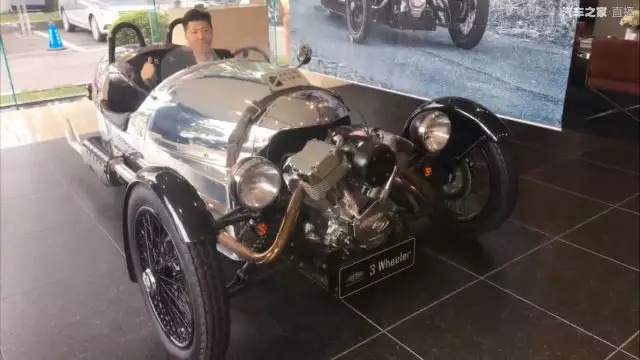 首先在摩根的展厅里,驾仕派体验了当天最便宜的一款车型——3 wheeler。虽然88万起步的价格看似还行,但这就像对比100平方的房子卖100万和50平方的小户型要80万——毫无疑问以车型类别的用途来讲,3 wheeler绝对是奢侈品级别的玩具——要知道摩根从进入中国市场的几年时间里一共只卖了73辆车,其中还无法正常上牌的3 wheeler肯定更是凤毛麟角。不过我们在现场得到信息,摩根最迟在明年就能办妥备案登记手续,让爱家可以把这部独特的3 wheeler真正开上路。