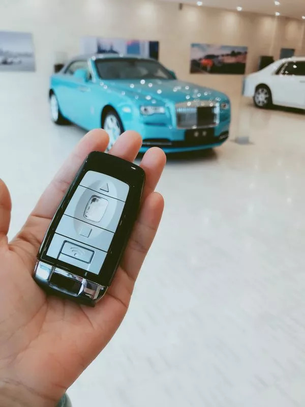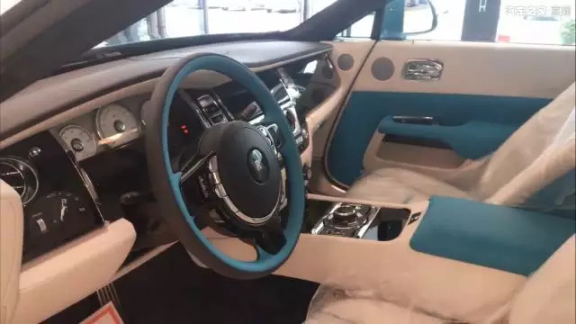 转入劳斯莱斯店内,我们主要关注到了一辆随时可以提走的现车:曜影。虽然这款延续1952年Silver Dawn血统的双门敞篷车型指导价格为477.8万,但这部独特的绿松石色曜影选装配置后已经要价668万,清新的双色内饰风格也足够吸引年轻买家的胃口。