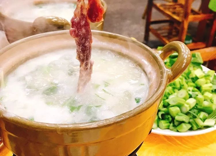 牛肉粥咕噜咕噜的在砂锅里打着滚,时不时飘出诱人的香味,粥底绵软,再点一份口感软糯,还能吃到细腻南瓜碎的南瓜饼,幸福感都要漫出来了!
