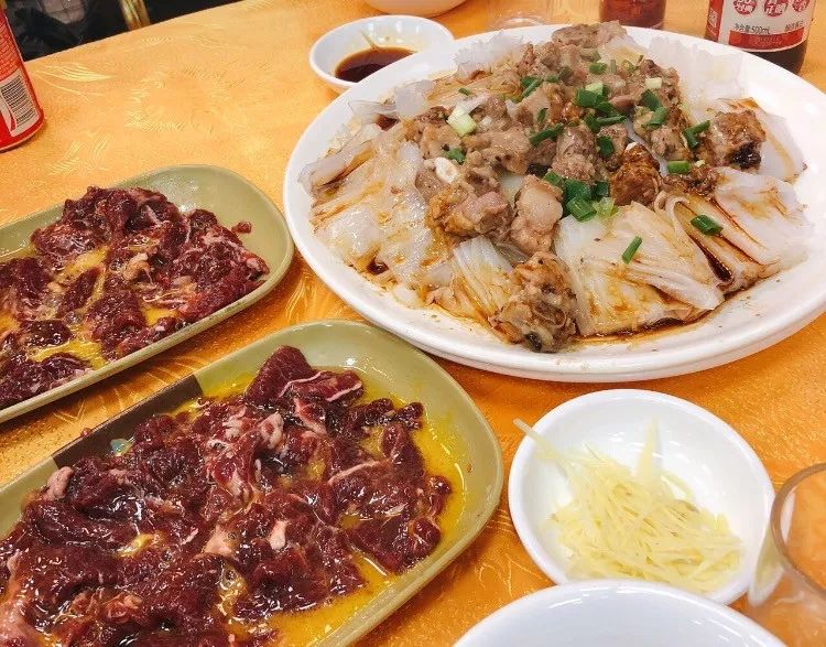 手打的墨鱼丸,香煎到金黄,里面还包裹着成条的墨鱼须,非常的Q弹!每一口都是满足感!还有他们家的私房招牌菜“菜心干蒸牛肉花”,爽口的菜干,入口即化的牛肉,搭配在一起,出乎意料的好味~