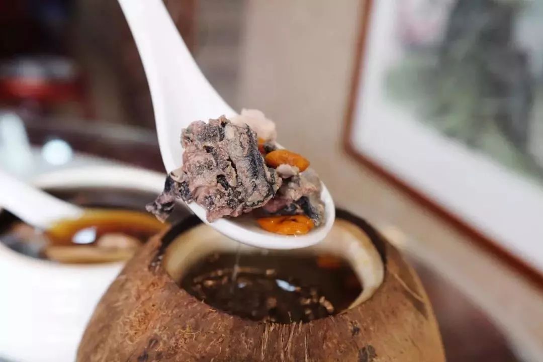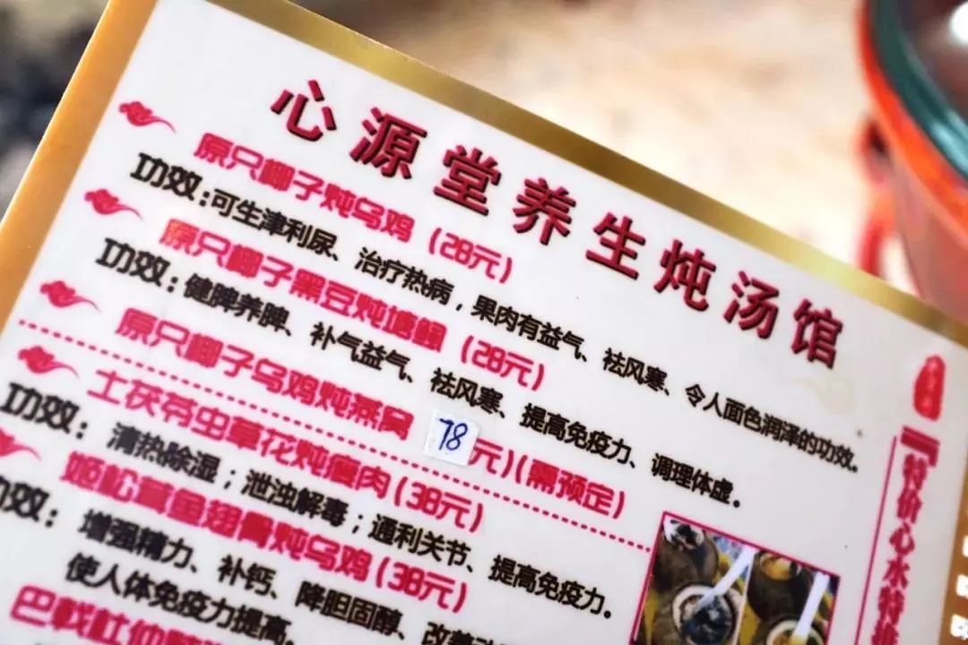 心源堂主打的是这款原汁椰子炖乌鸡,相较添加了大量中药的汤,这款汤里更多的是椰子的清甜和乌鸡的鲜美。汤润而和味,喝下去非常舒服!