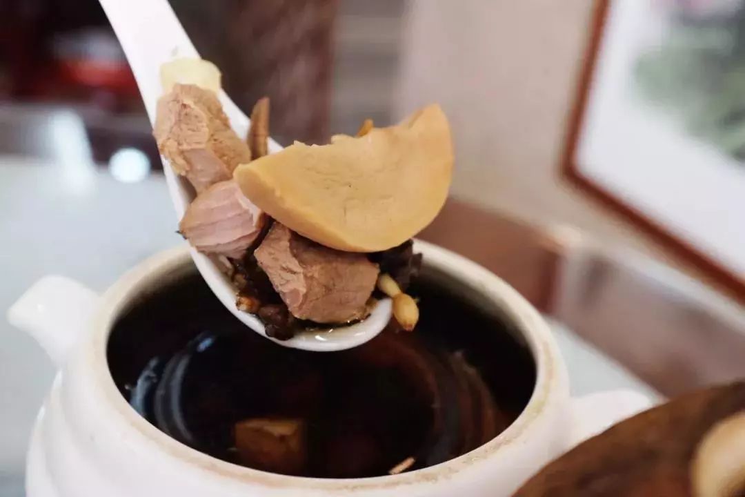 了能馆算是顺德比较出名的私房菜馆了,这里的食材,离不开一个“鲜”字。烧鹅皮脆肉嫩,蘸着酸梅酱更加清甜解腻。猪肚汤料超足,汤色奶白,筒骨酥烂,猪肚很有嚼劲,广东人对汤的专注,从这一盅汤,就能窥见一二!