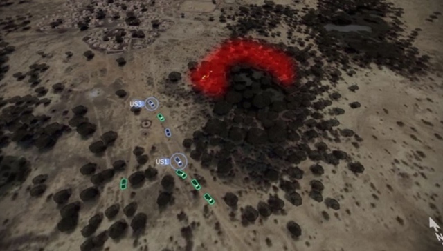 视频通过模拟画面显示,最开始车队只遭遇了零星攻击,但随着车队进入灌木密集地区,攻击越来越猛烈。猛攻迫使车队停了下来,部分士兵用车上的M240进行还击,其他士兵则下车进行还击。