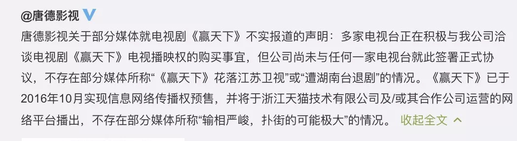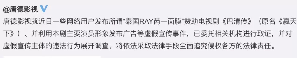 然而撤档后的这段日子里最忙的恐怕就是《巴清传》的主出品方唐德影视了。树大招风的《巴清传》接连遭遇“碰瓷”,忙得官微三天一大声明,两天一小声明,整天跟着剧组后面擦屁股==