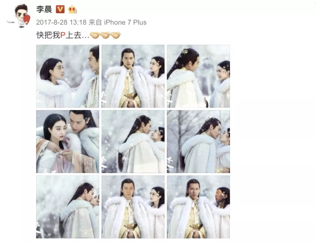 当初《巴清传》发布高云翔与范冰冰的剧照之时,“大黑牛”李晨还在网上酸溜溜地发了条微博,求网友把他的脸P上去。