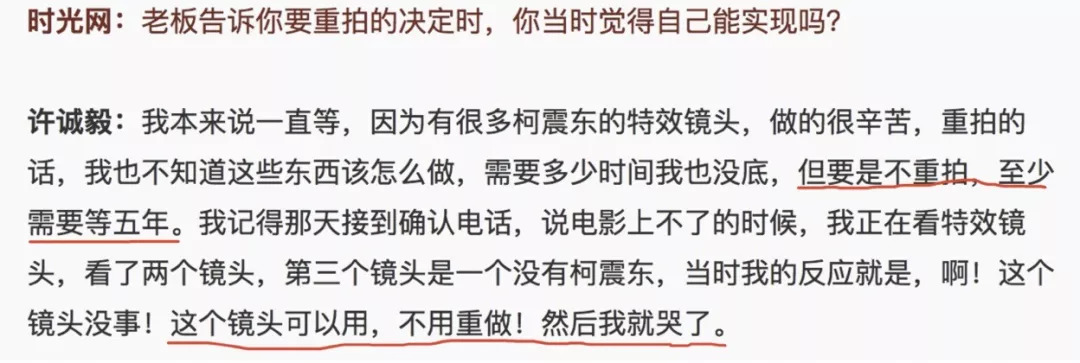 重拍的时候两天拍完一场,晚上就要剪出来,然后马上送去做后期,真是real心酸……不过正因为这样的努力,《捉妖记》最终的版本还是赚足了口碑与票房。
