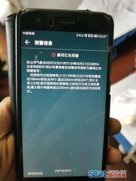 乐山市公安消防支队官方微博22日中午消息,5月22日凌晨,灾情发生后,乐山消防连夜出动,奔赴受灾区域紧急转移受灾民众。截止22日早上7时,乐山消防部队官兵联合党政军群已从各受灾点救助出了近千多名群众。与此同时,降雨仍在继续,官兵们奋斗了一个通霄后仍还战斗在抗洪的第一线,全力开展排涝和排险。目前,抢险救援仍在紧张进行中。